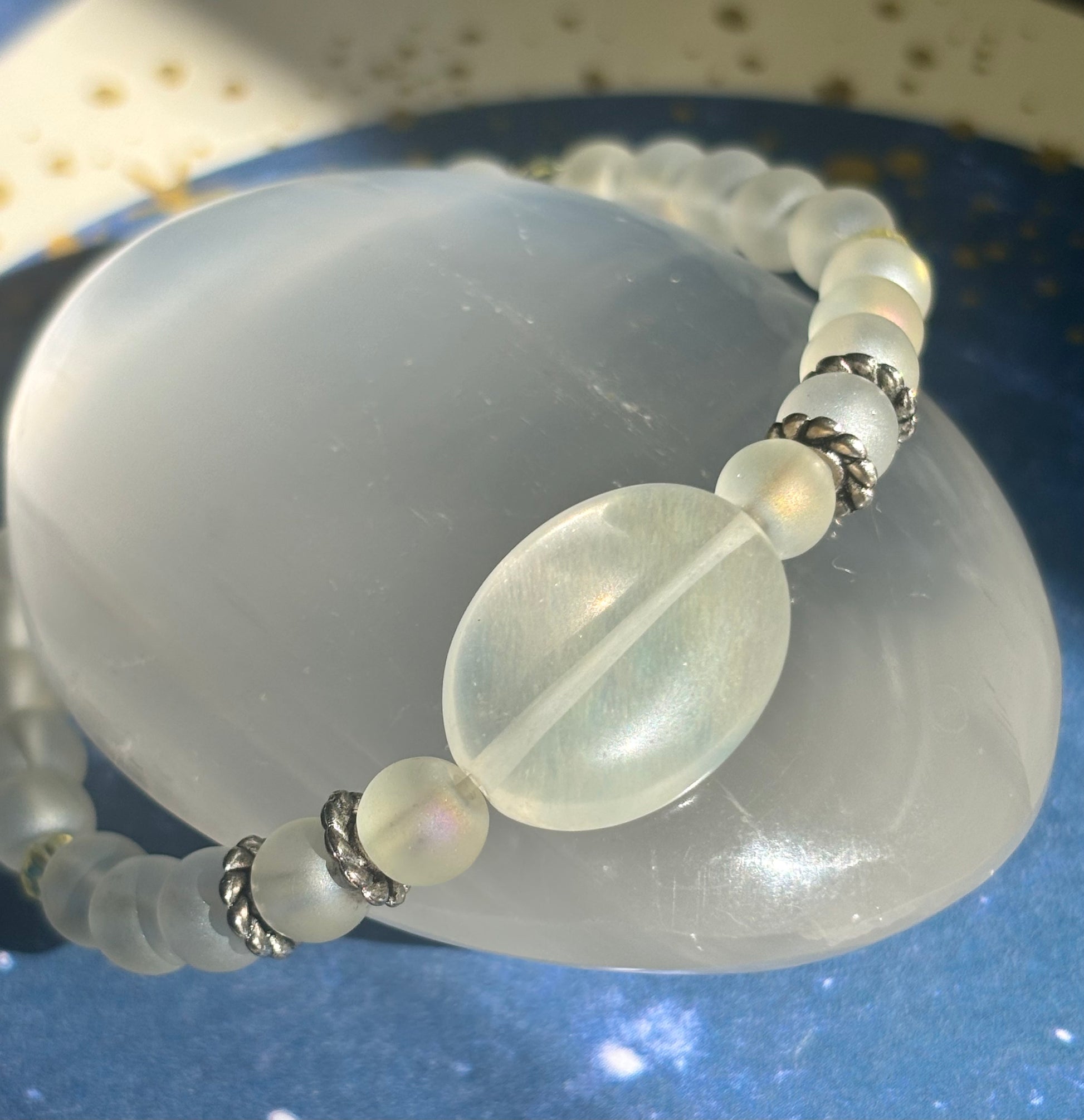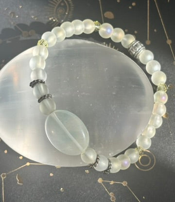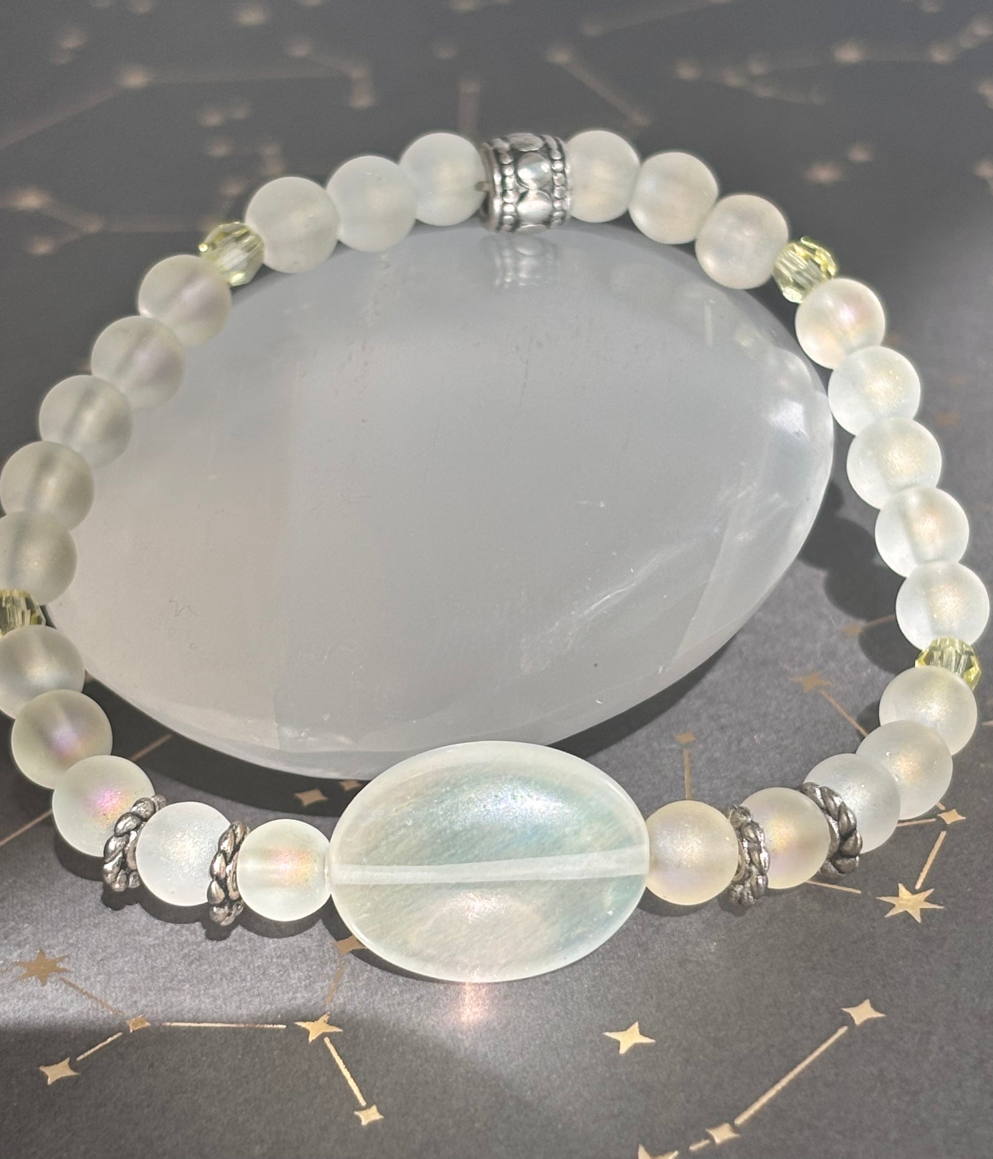 Light dances in every facet of Bright and Bubbly, a bracelet infused with airy optimism and playful curiosity. Pineapple quartz and sparkling glass beads shimmer like sunlit waves, creating an energy that’s as effervescent as laughter on a summer breeze. This piece is for the dreamers, thinkers, and seekers—those who thrive on possibility and delight in the unexpected. Its airy quality lifts the mind, encouraging flashes of inspiration and the courage to chase them before they drift away like clouds on the wind.