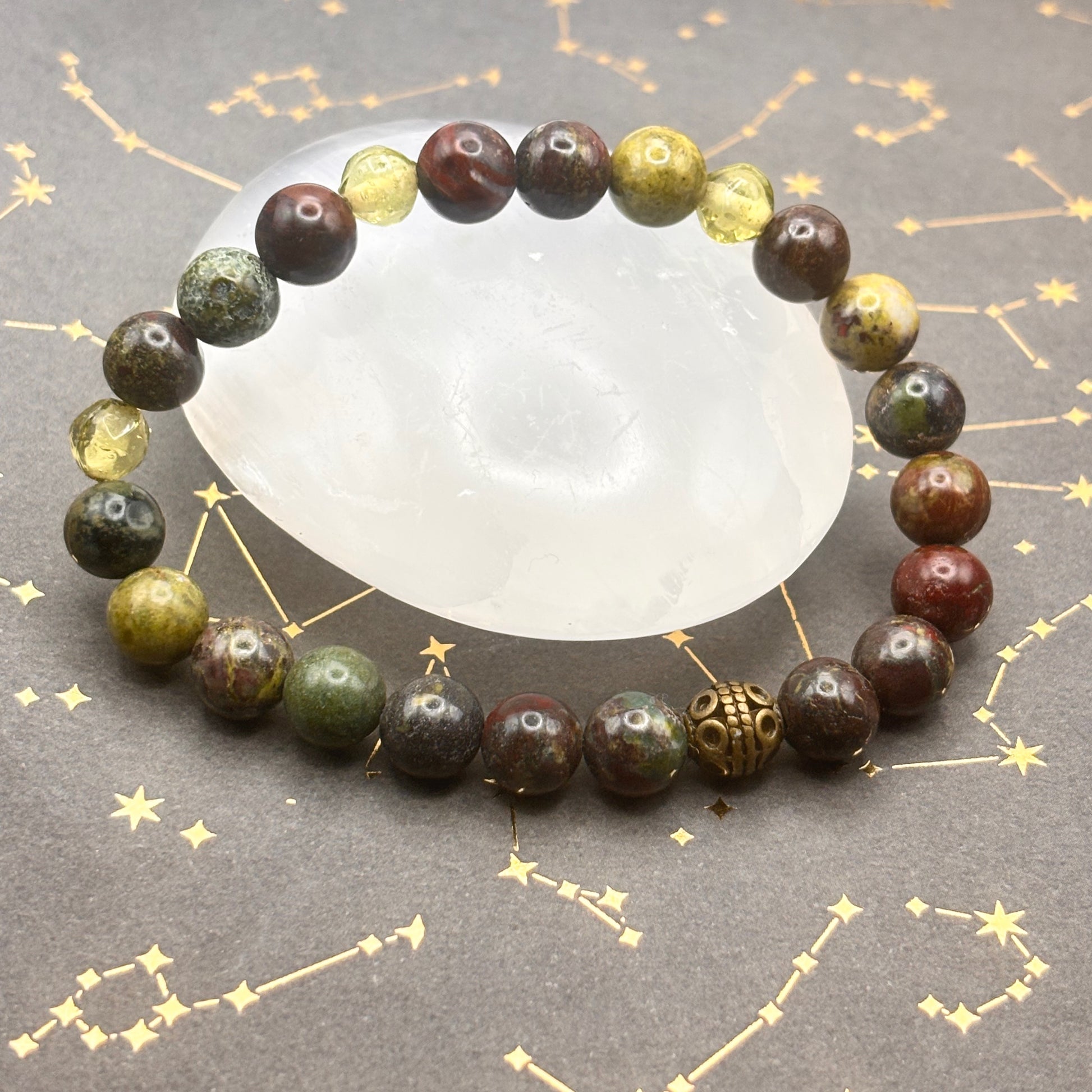 The energy of fresh starts and fertile ground, this bracelet is a quiet revolution in your palm. Dragon’s Blood Jasper pulses with ancient earth wisdom — softening grief, clearing self-doubt, and encouraging you to plant hope where pain once grew.
