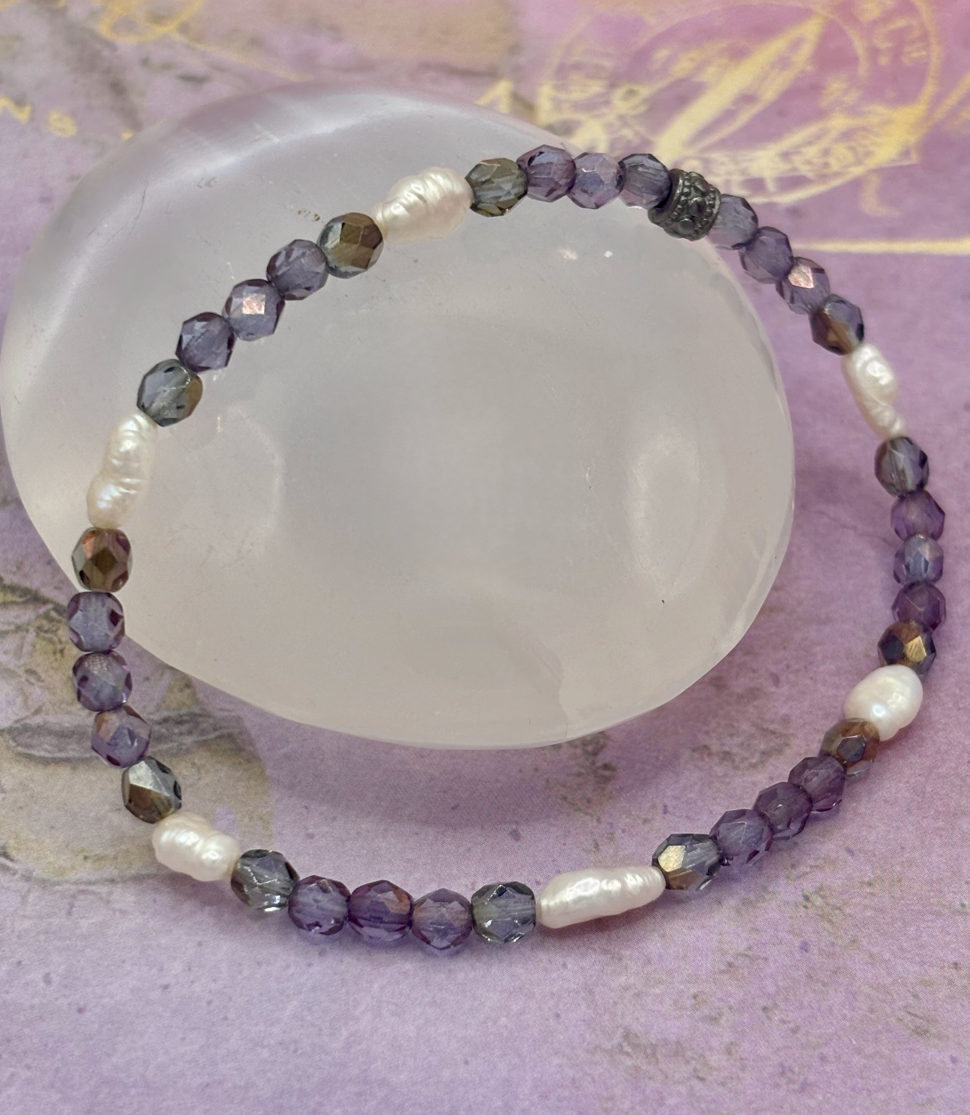 Like twilight whispers and moonlit tides, Intuition is a quiet yet potent guide. Faceted indigo Czech glass beads shimmer like starlight, reflecting the depth of inner knowing, while luminous cultured pearls evoke purity, wisdom, and the gentle rhythm of the sea. Together, they form a talisman for trust—trust in your path, your instincts, and the unseen threads that weave your destiny.