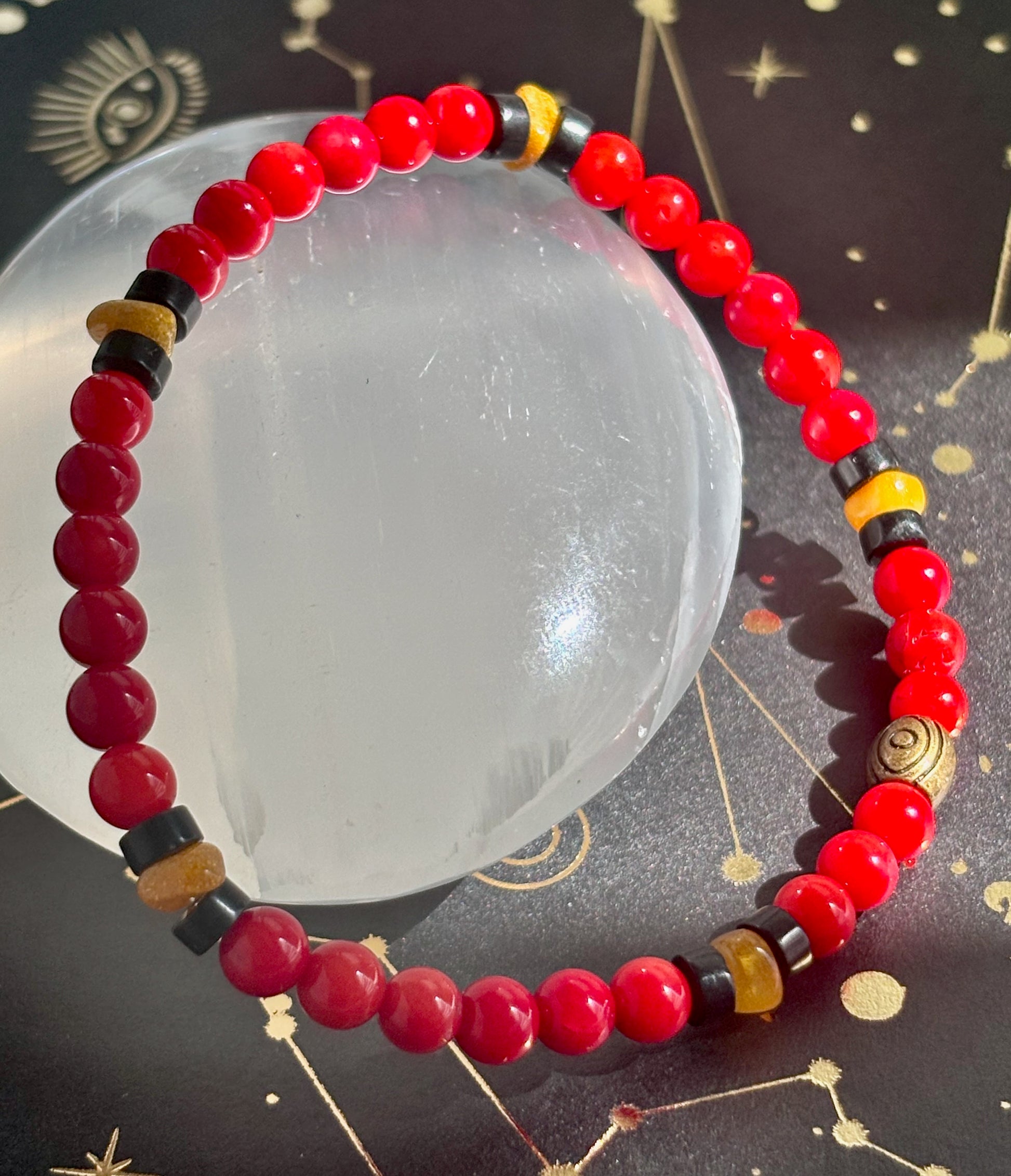 All eyes turn when the glow of red bamboo coral enters the room. Like a flame that never dies, this bracelet radiates vitality, courage, and unwavering strength. Coral’s vibrant fire energy is tempered with peace and transformation, protecting against negativity and reinforcing resilience where you feel most vulnerable.